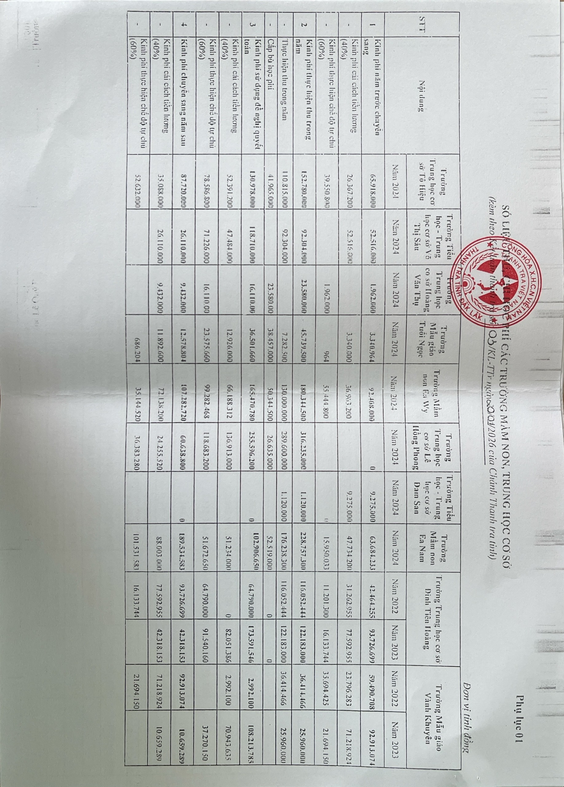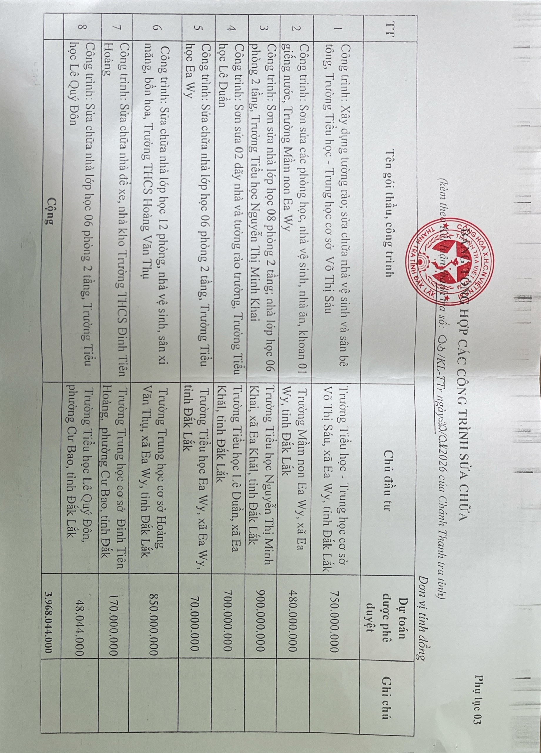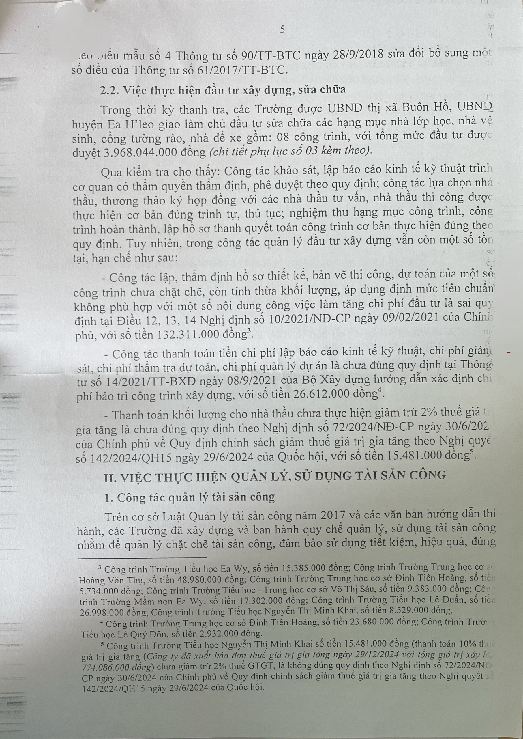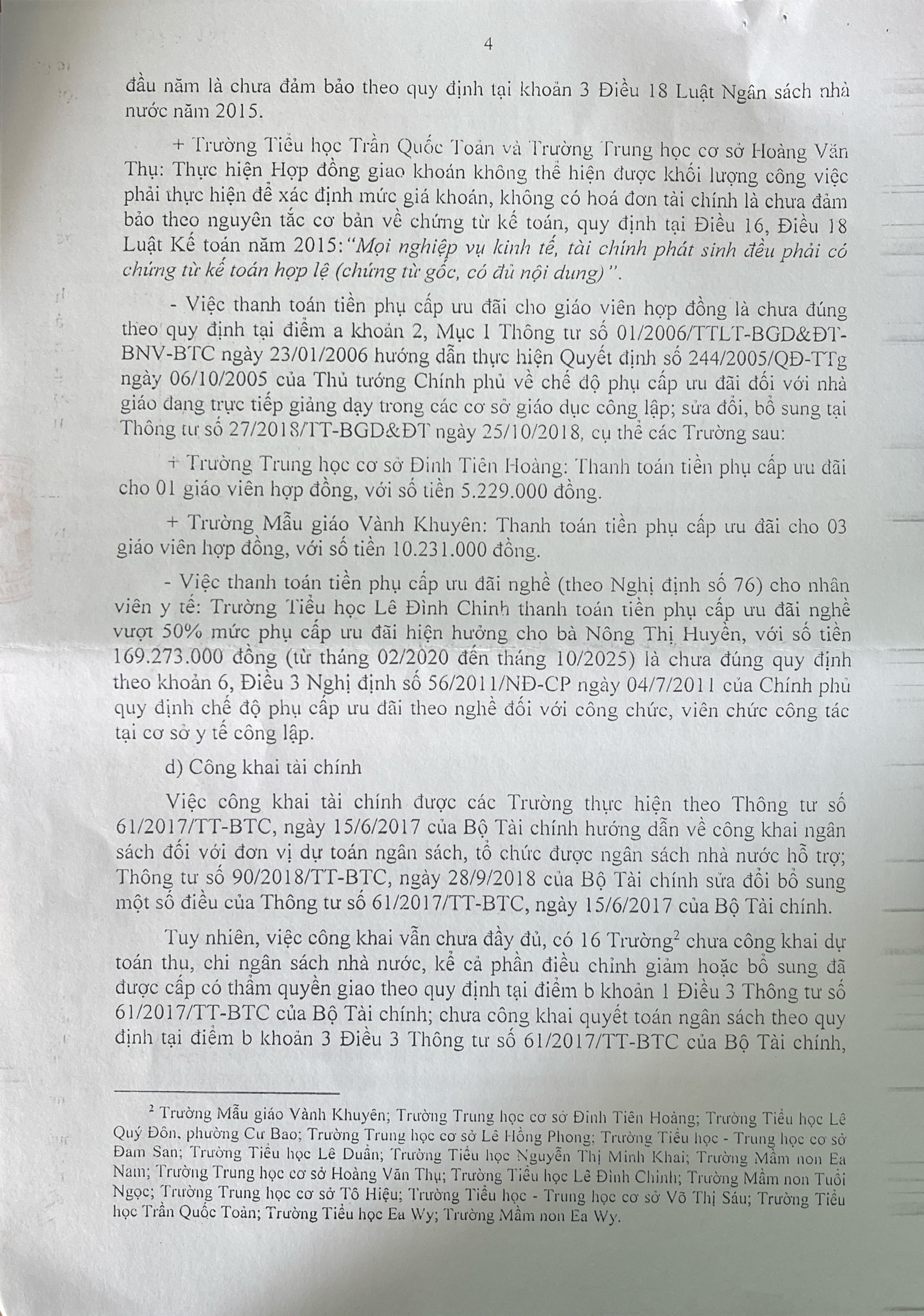 Kết luận thanh tra việc thực hiện chính sách, pháp luật về quản lí sử dụng ngân sách tài sản công tại các trường học trên địa bạn Phường Cư Bao, xã Ea Khăl, xã Ea Wy, tỉnh Đắk Lắk,