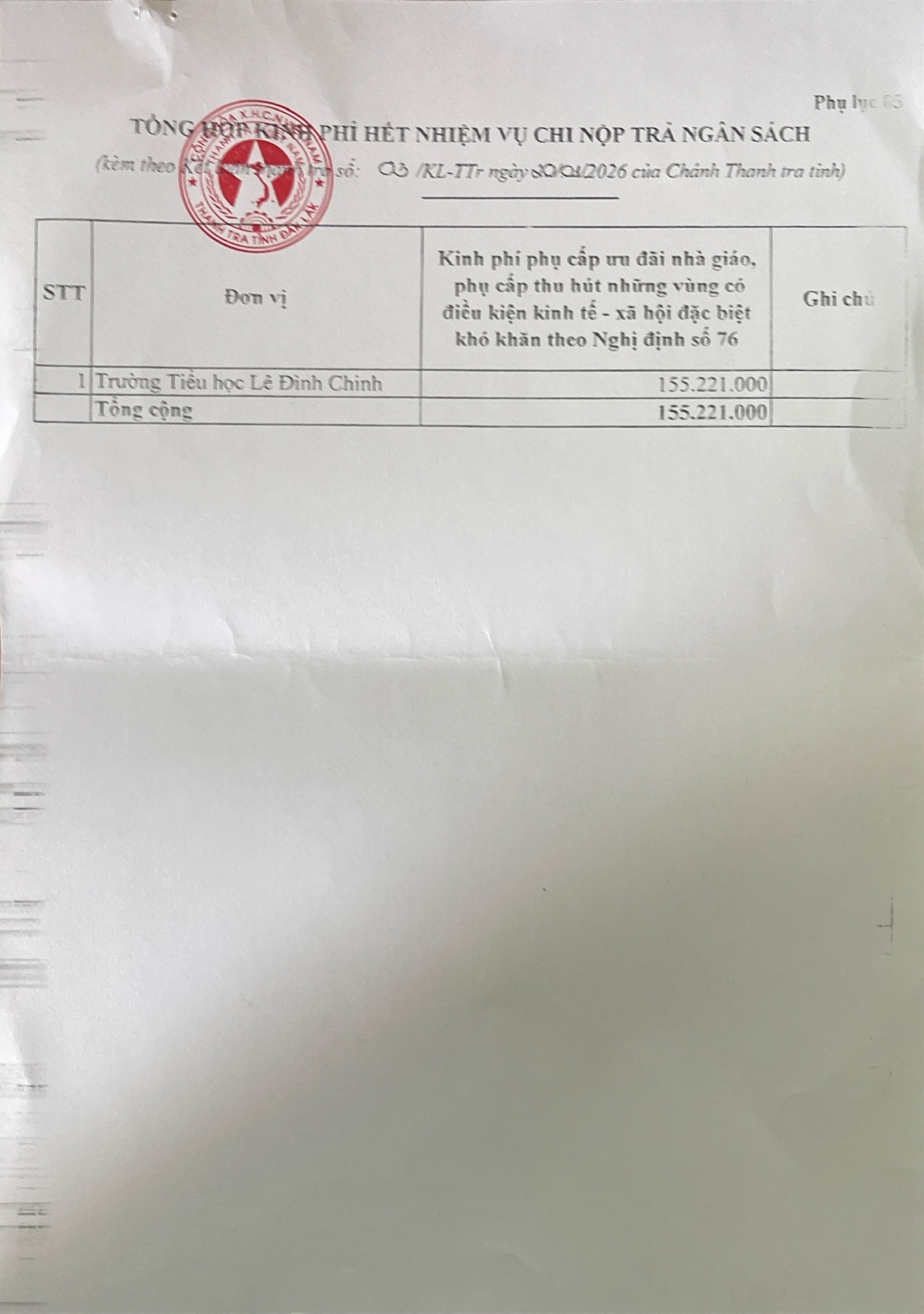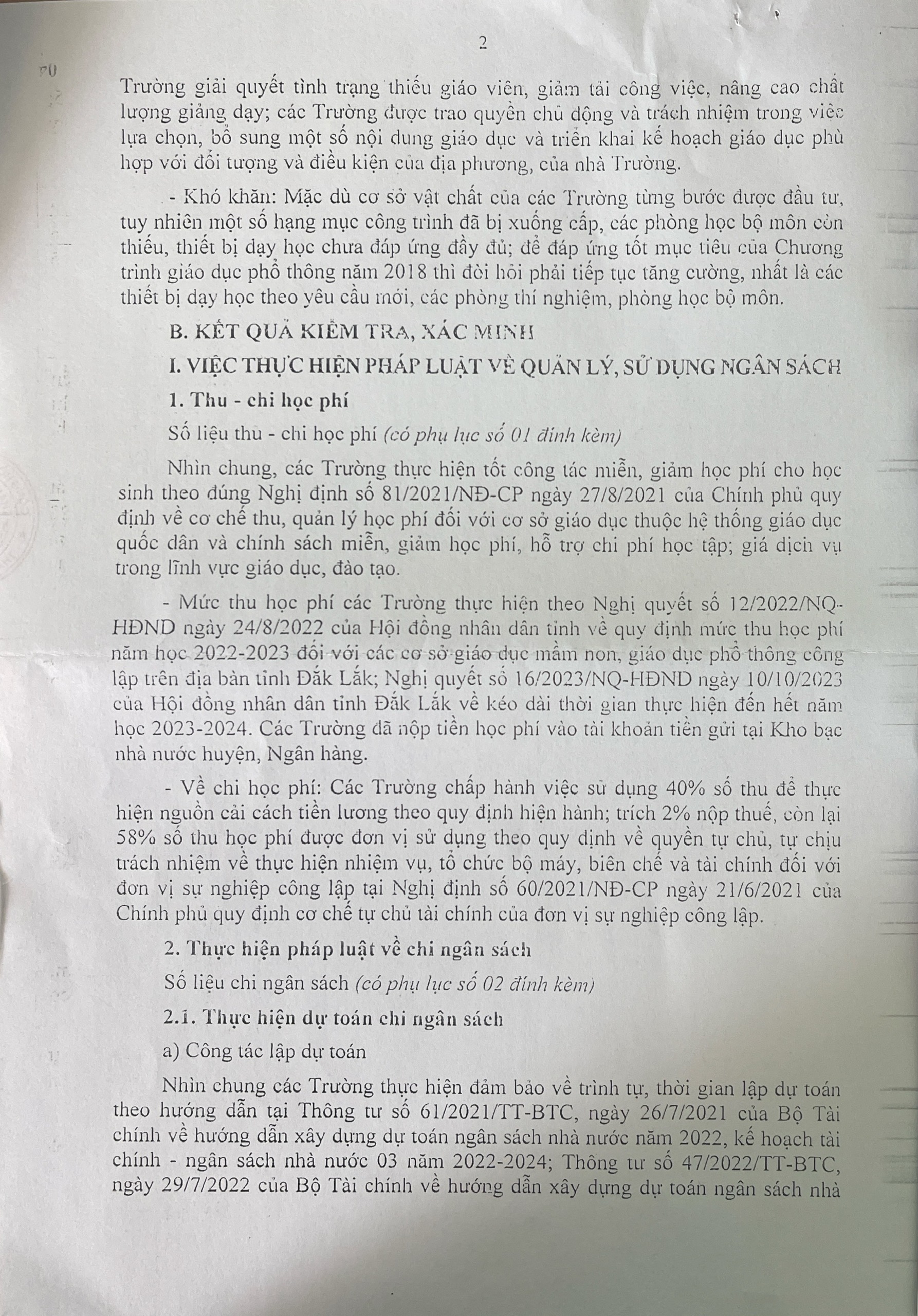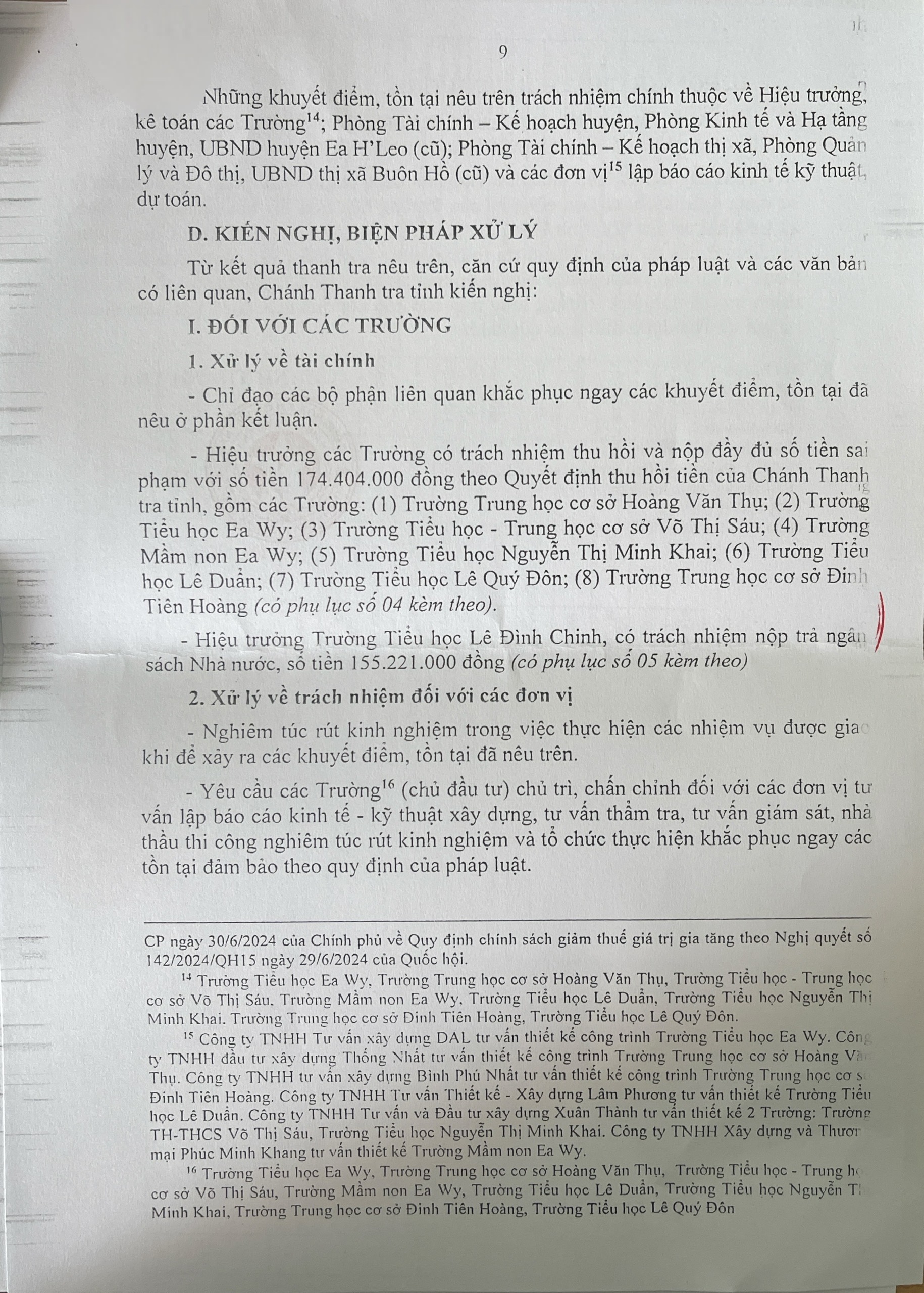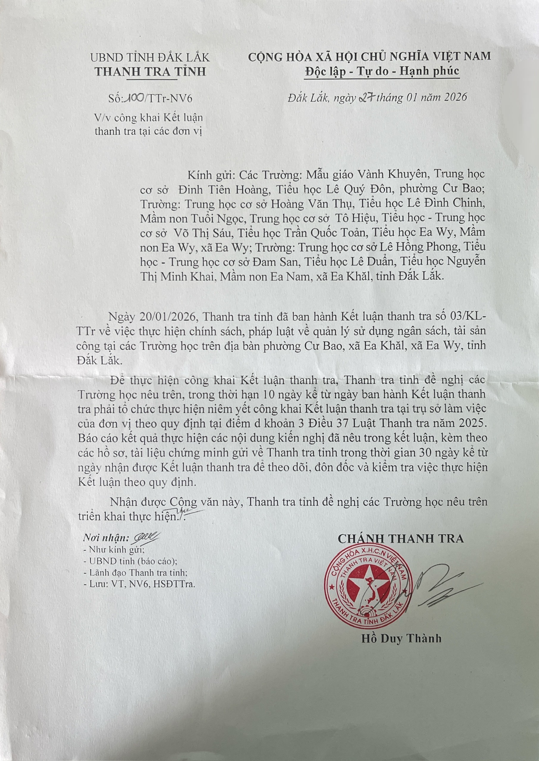 Kết luận thanh tra việc thực hiện chính sách, pháp luật về quản lí sử dụng ngân sách tài sản công tại các trường học trên địa bạn Phường Cư Bao, xã Ea Khăl, xã Ea Wy, tỉnh Đắk Lắk,